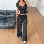 Be the first to review “Button Short Sleeve Wide Leg Long Pants Set for Women”