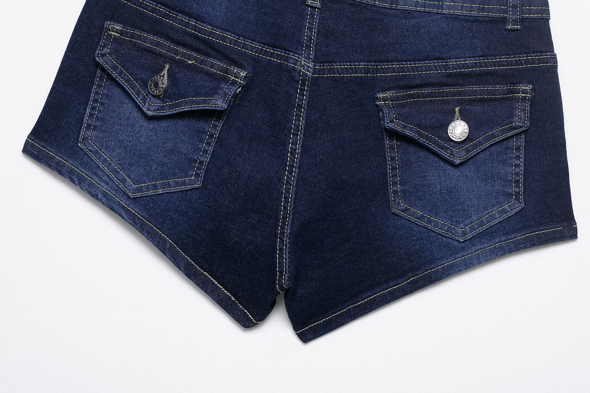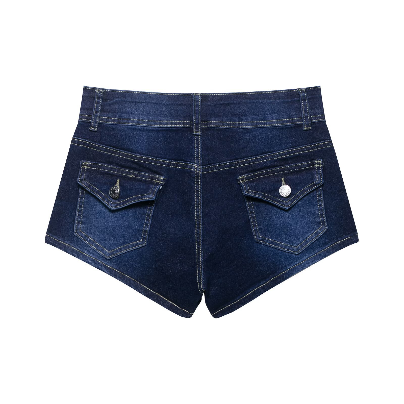 Casual and versatile low waisted buckle made old denim sweet and spicy shorts for women
