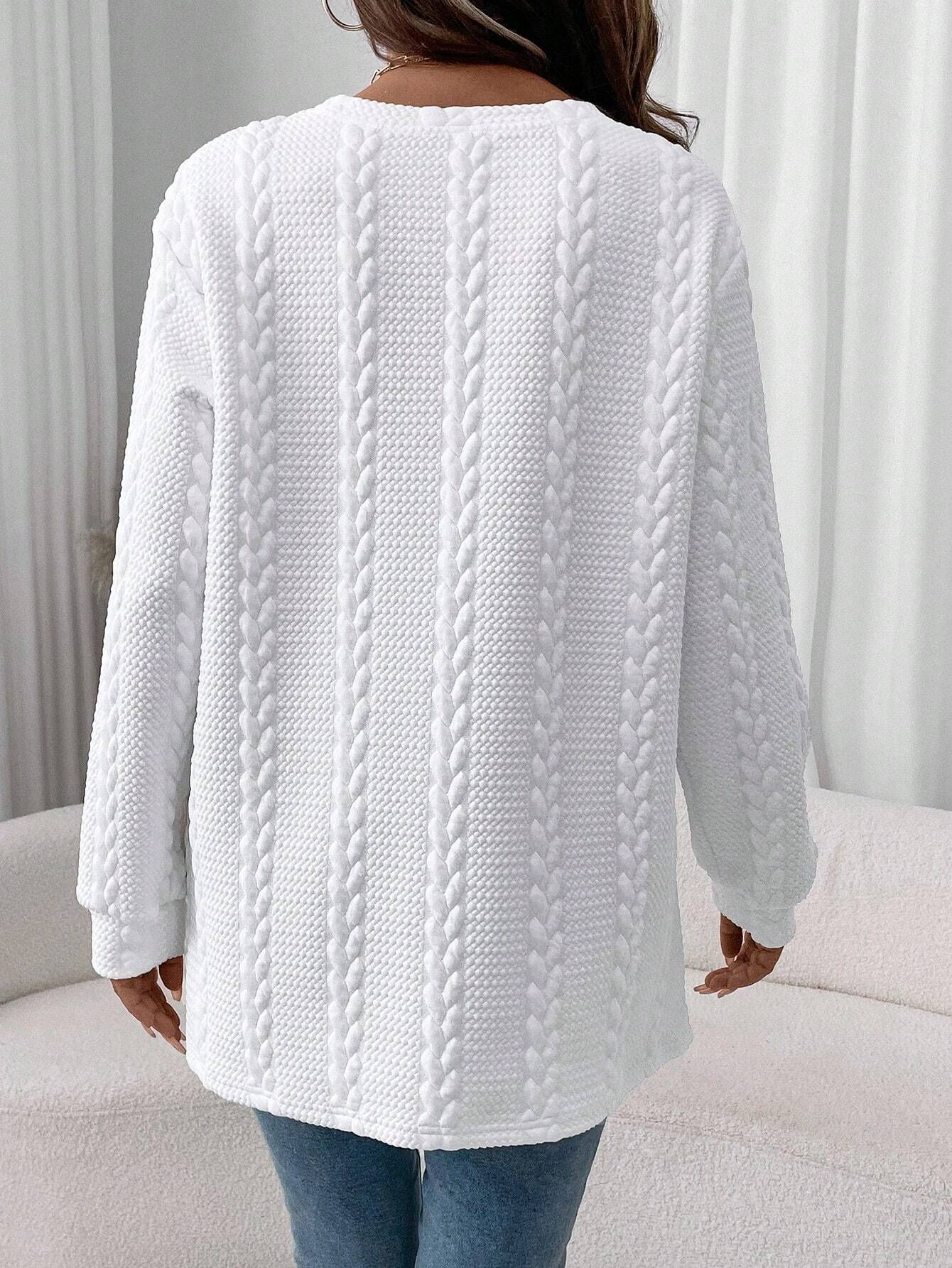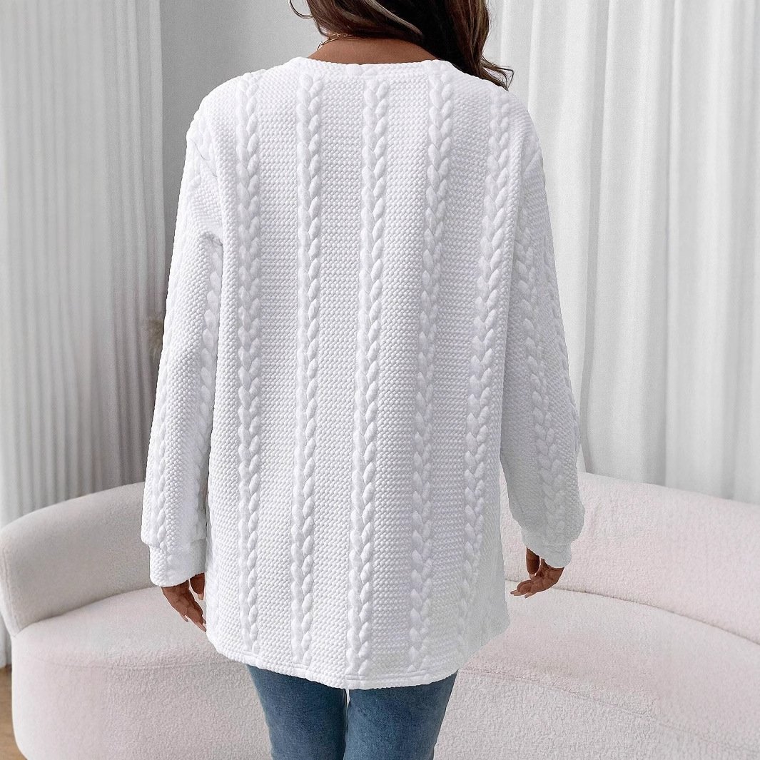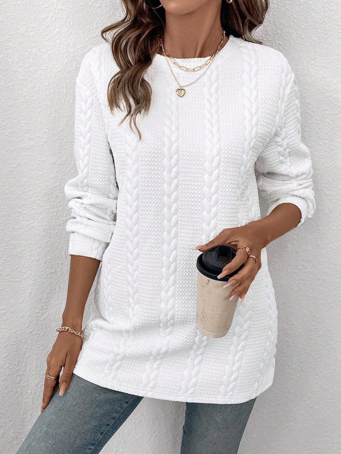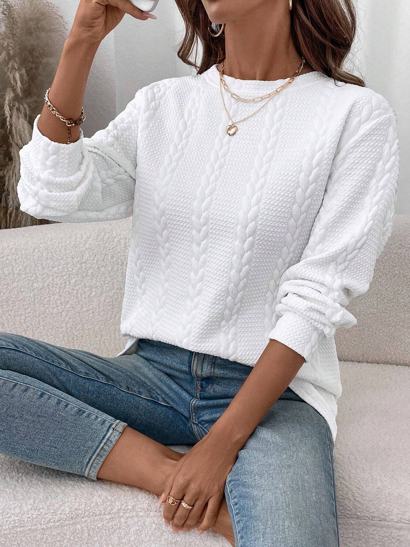 Casual Round Neck Solid Color Wheat Texture Sweatshirt for Women