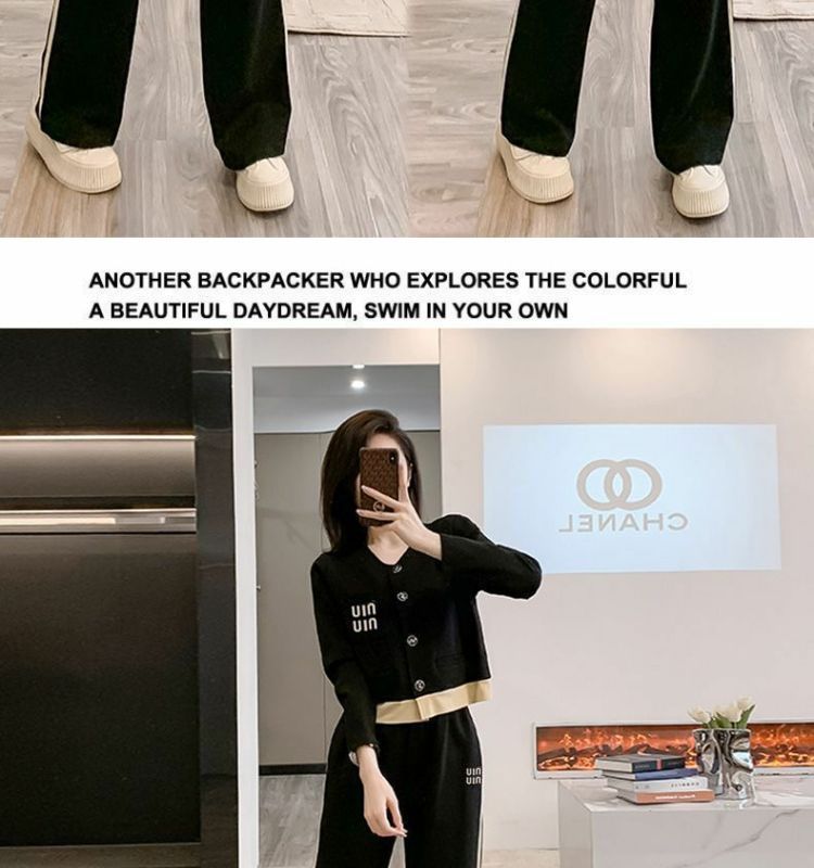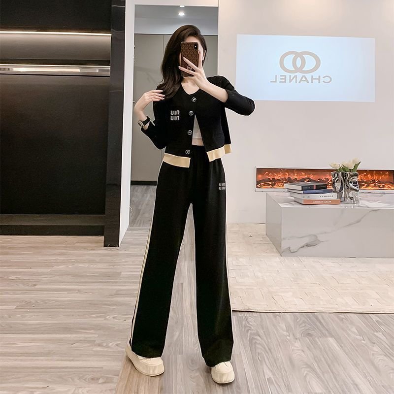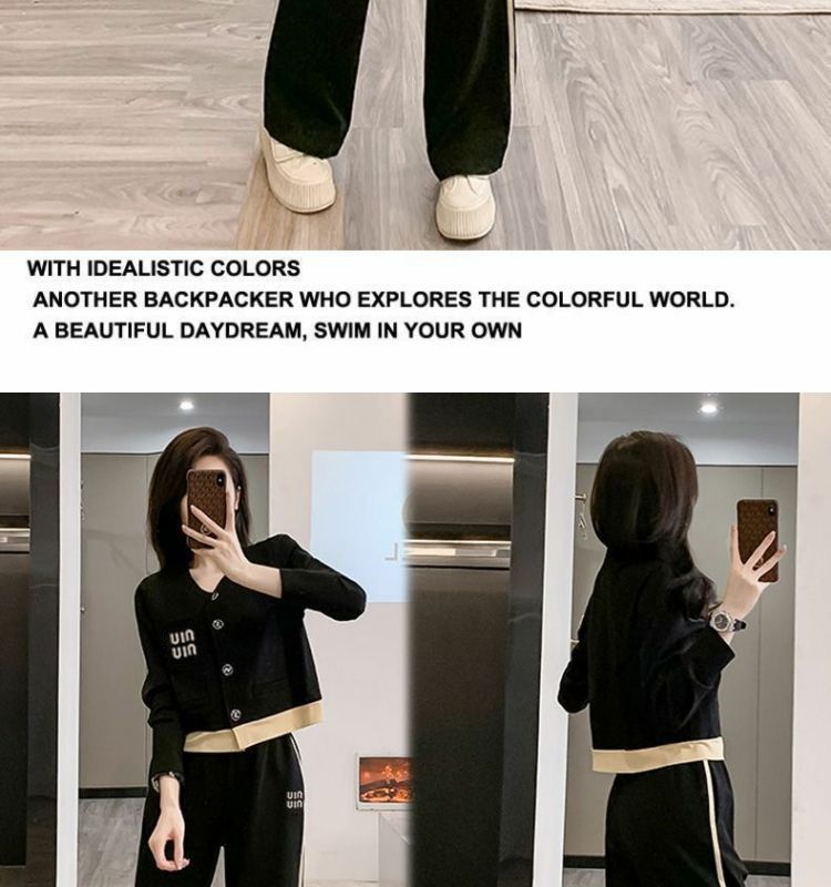 Be the first to review “Color Block Open Cardigan Wide Leg Pants Two-Piece Set for Women”