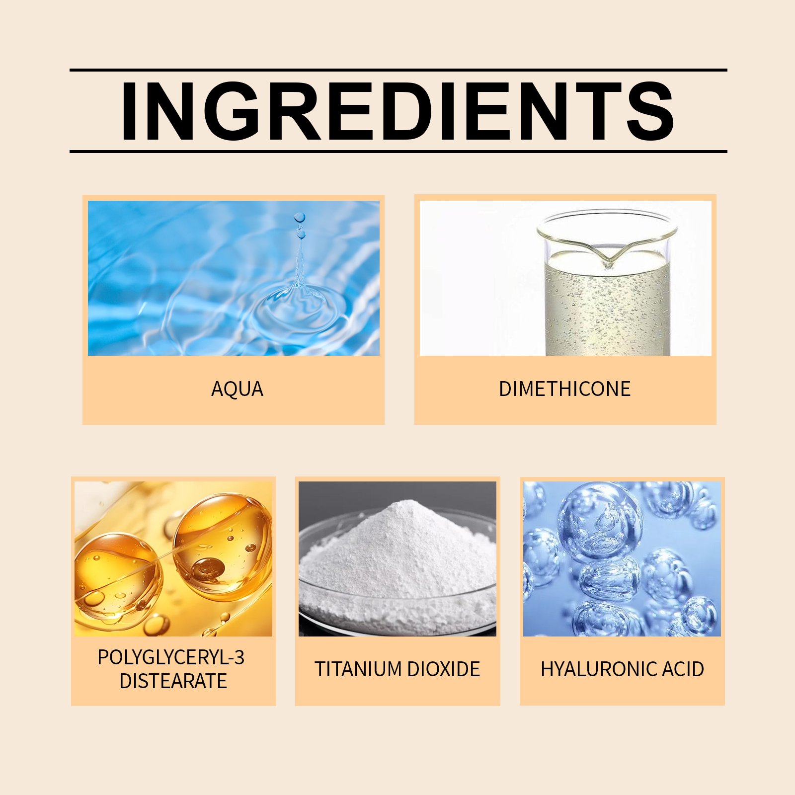 Our facial CC cream is carefully formulated with titanium dioxide and hyaluronic acid. Specially designed to delay skin aging. The usage method is extremely convenient: Clean and dry the facial skin. Take an appropriate amount of this product and apply it evenly to the face. It can be used as a combination of foundation and makeup, or used alone. And it can provide a perfect foundation for makeup.