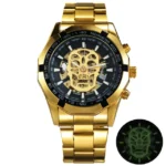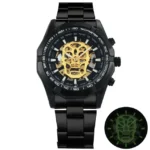 Be the first to review “Mechanical Watch Men Skull Golden Stainless Steel Strap Skeleton Man Watch”