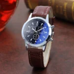 Top Brand Fashion Featured Quartz Watch Three Eyes Watch Quartz Men's Watch Leather Belt Men's Black White Glass Belt Men