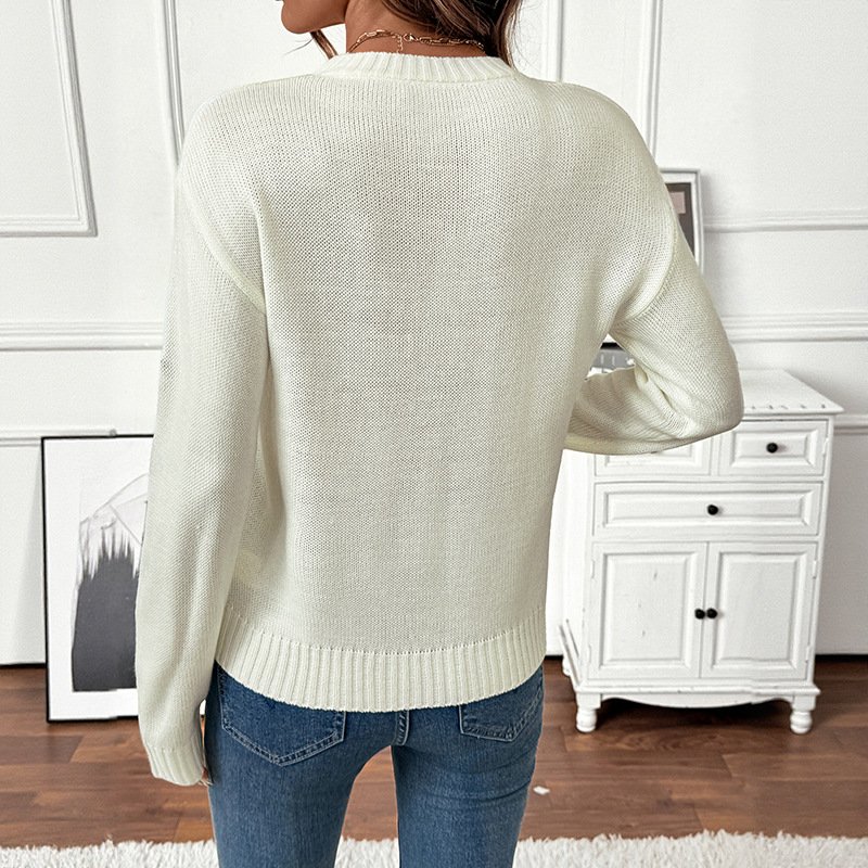 亚马逊欧美跨境外贸2025å¹´ç§‹å†¬å£æ–°æ¬¾æ¸…新甜美圆领套头毛衣女