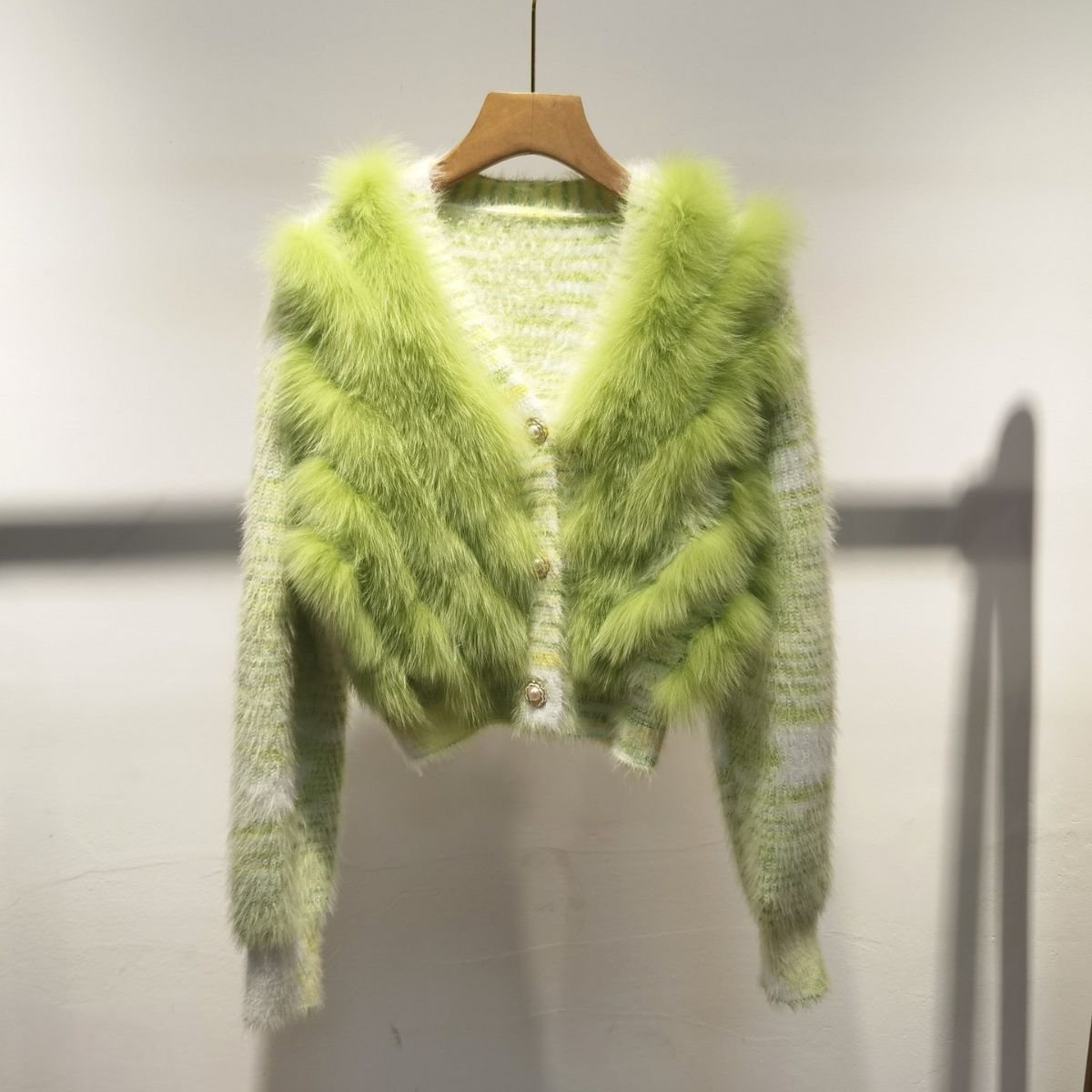 Short cardigan jacket, knitted sweater, hairy spring and autumn new top