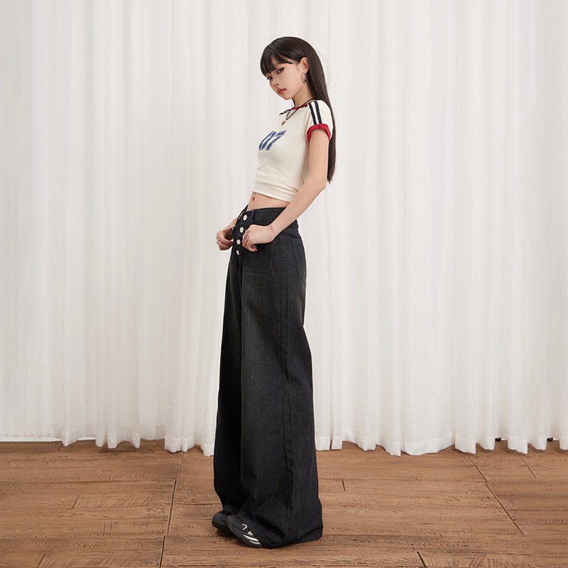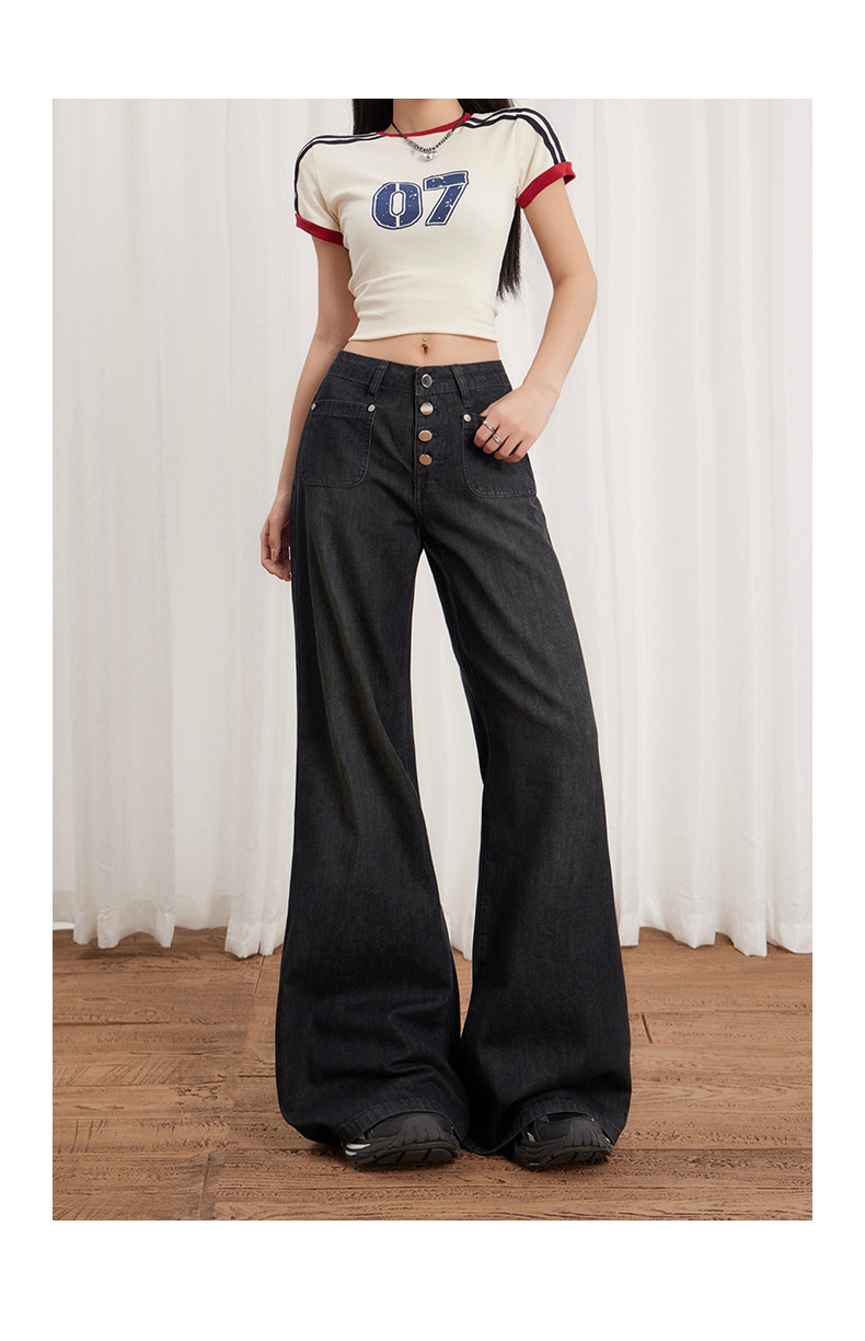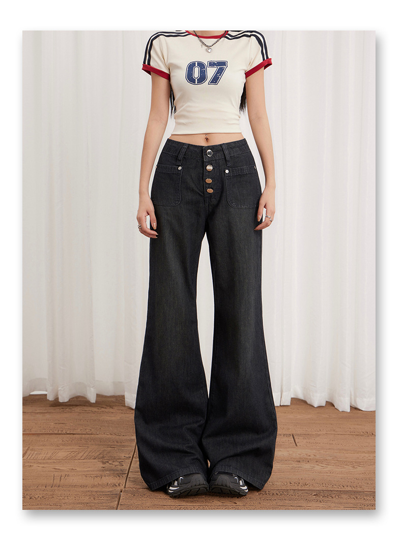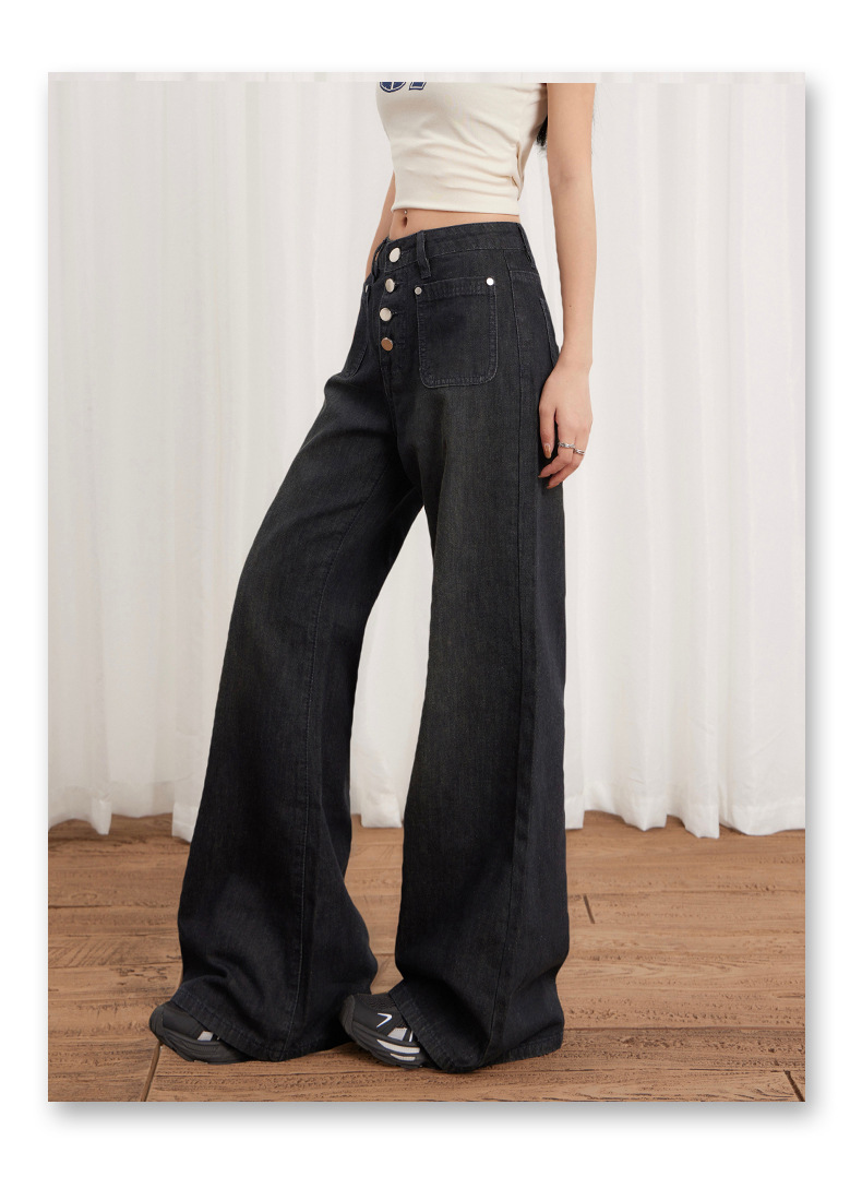 Women’s Buttoned Loose Wide-Leg Jeans Summer Thin Versatile Casual Flare Pants
