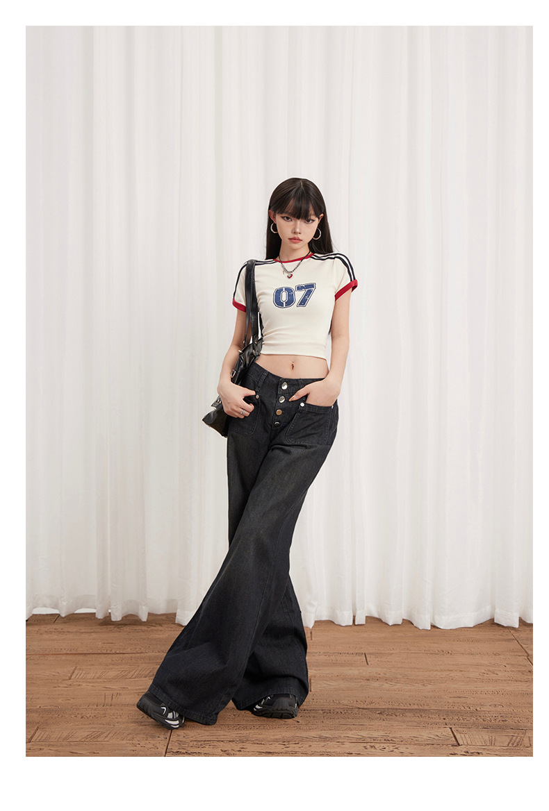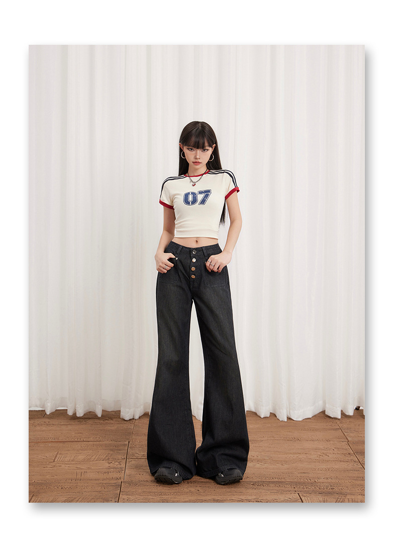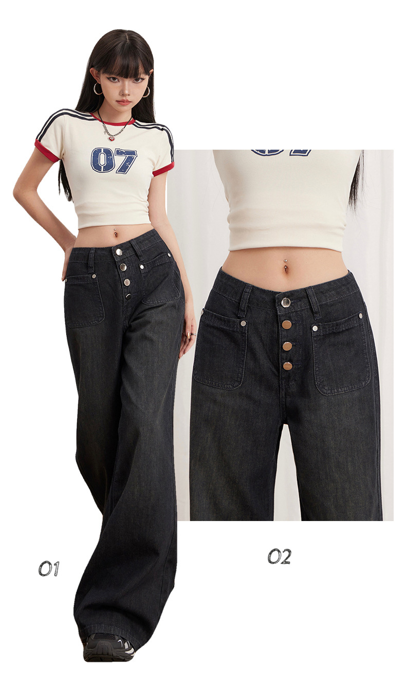 Women’s Buttoned Loose Wide-Leg Jeans Summer Thin Versatile Casual Flare Pants